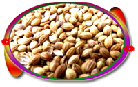 General Information :- Coriander is a native of the Mediterranean. It is a herb mentioned in the bible. It was used as a cure for facial spots during the middle ages. Coriander is now a major crop throughout the world. The great Arabian classic 'thousand and one nights' often refers to this spice as an aphrodisiac. Coriander is the dried fruit of an annual herb, with several branches and serrated leaves. The small flowers yield green globular fruits, which turn yellowish brown when ripe. The seeds are picked when the ripening is in progress and is then sun dried.